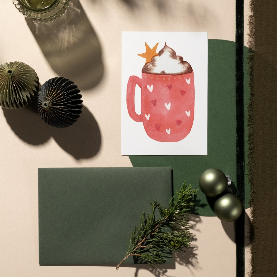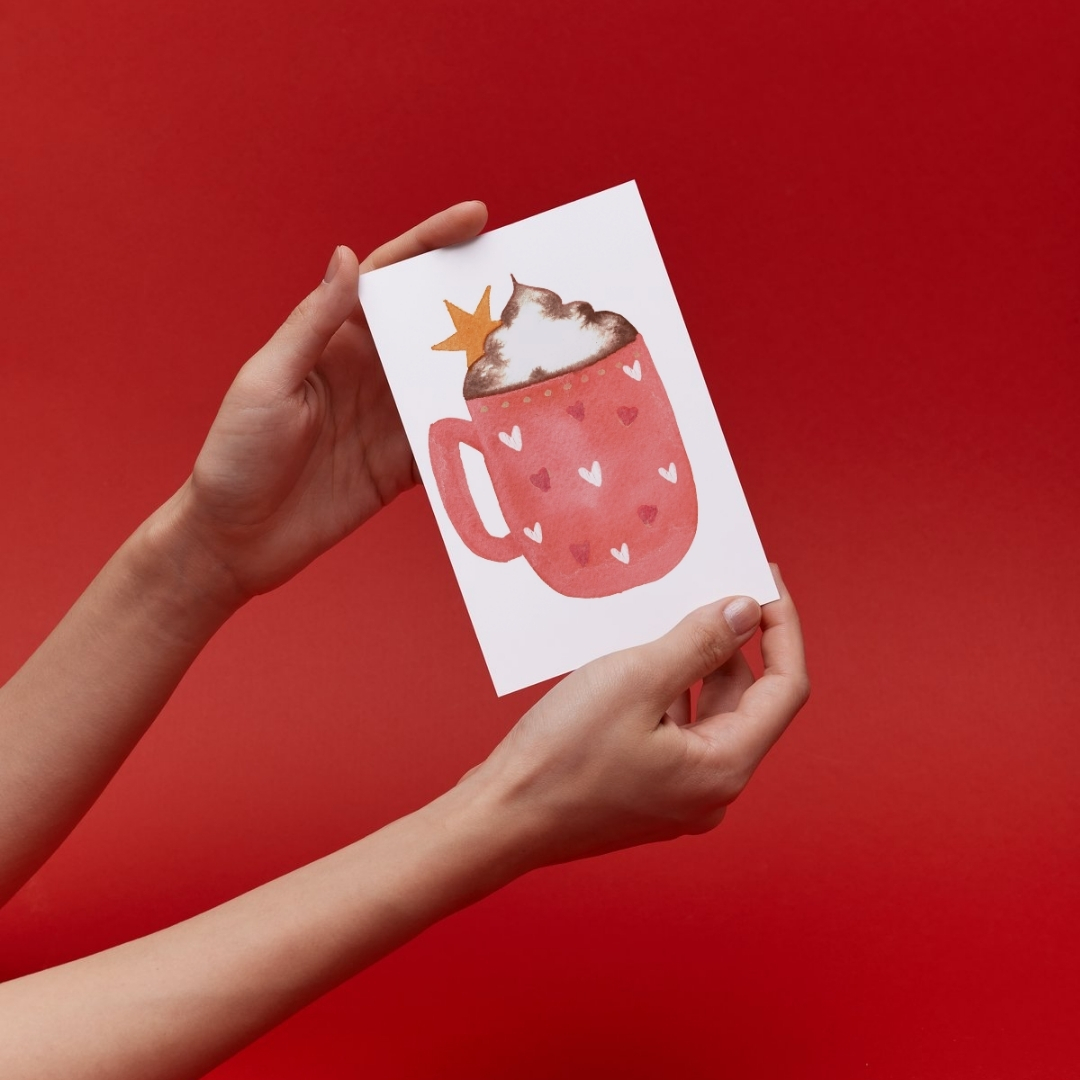 Douce, tendre et intime, cette carte est celle qu’on envoie pour dire merci, je pense à toi, tu comptes.
